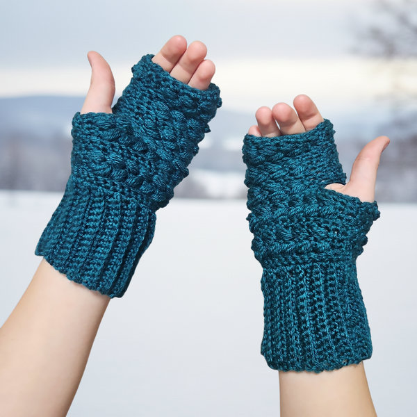 Háčkovaný návod na rukavice bezprsťáky s obilným puffkovým vzorem je skvělým projektem pro vytvoření praktického a stylového zimního doplňku, který zahřeje ruce a zároveň ponechá prsty volné pro telefon, kočárek nebo běžné denní činnosti. Plastický obilný vzor s nadýchanými puffky dodává rukavicím výraznou strukturu a elegantní vzhled, který krásně vynikne z příze Everyday a snadno se kombinuje s čepicí či nákrčníkem ve stejném stylu.