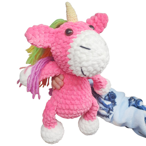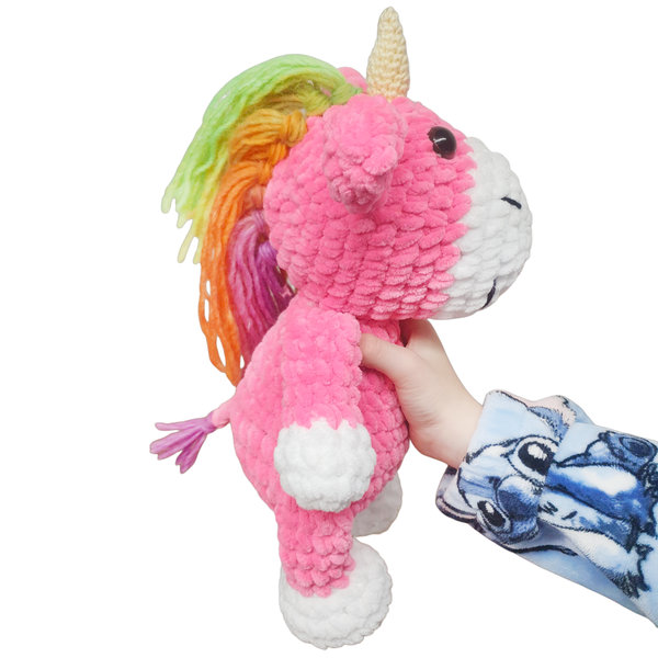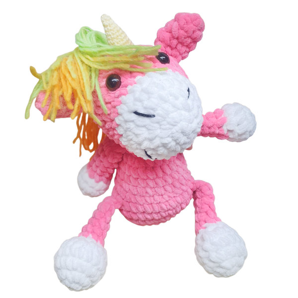 Vytvořte si vlastního kouzelného jednorožce plného barev a radosti! Tento podrobný háčkovací návod je ideální pro každou tvořivou duši, která miluje ruční práce a chce potěšit sebe nebo své blízké originálním handmade dárkem. Návod je vhodný pro začátečníky i pokročilé a provede vás krok za krokem – od háčkování nožiček a rukou až po růžovou hřívu a třpytivý roh.