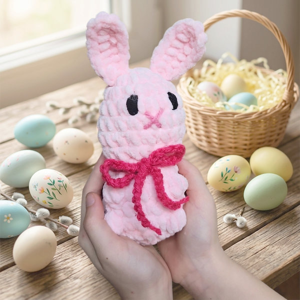 Vytvořte si vlastního roztomilého háčkovaného zajíčka s tímto podrobným návodem, ideálním pro milovnice háčkování všech úrovní. Tento návod vás provede krok za krokem od základního těla a hlavy, přes uši, až po závěrečnou mašli, s využitím techniky Booble Stitch z dlouhých sloupků (DS) pro plastické bříško a detaily, které zajíčkovi dodají živý a hravý výraz. Háčkovaný zajíček je skvělý jako dekorace do dětského pokojíčku, originální dárek pro blízké nebo zábavný doplněk ke tvoření a relaxaci.