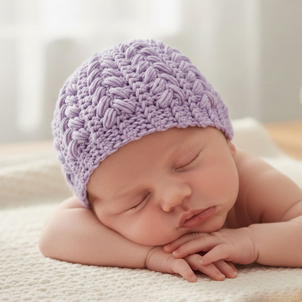 Čepice pro miminko – obilný puffkový vzor je podrobný háčkovací návod vhodný pro vytvoření jemné, hřejivé a zároveň efektní čepičky pro miminka, která krásně drží tvar a díky plastickému obilnému puff vzoru působí ručně a láskyplně. Návod je ideální jak pro osobní radost, tak jako originální dárek k narození miminka, na focení newborn, do kočárku nebo jako součást výbavičky, přičemž umožňuje snadné přizpůsobení velikosti podle obvodu hlavičky.