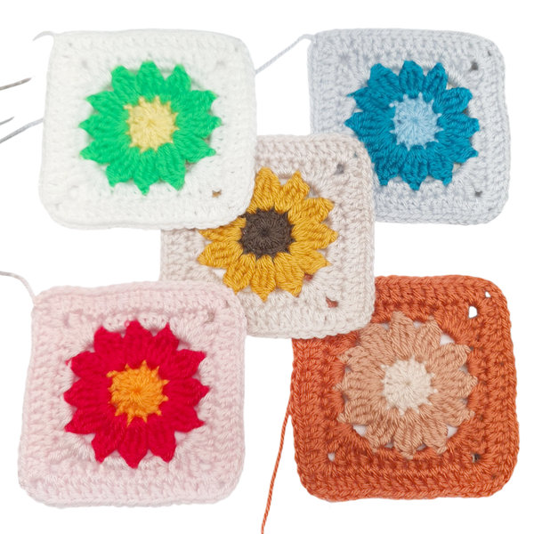 Háčkování tohoto čtverce je skvělý relax po náročném dni a zároveň způsob, jak procvičit techniku sháčkovaných sloupků a práci s barvami. Vytvořte si vlastní rozkvetlou kolekci slunečnic – ideální dárek i radost pro sebe.